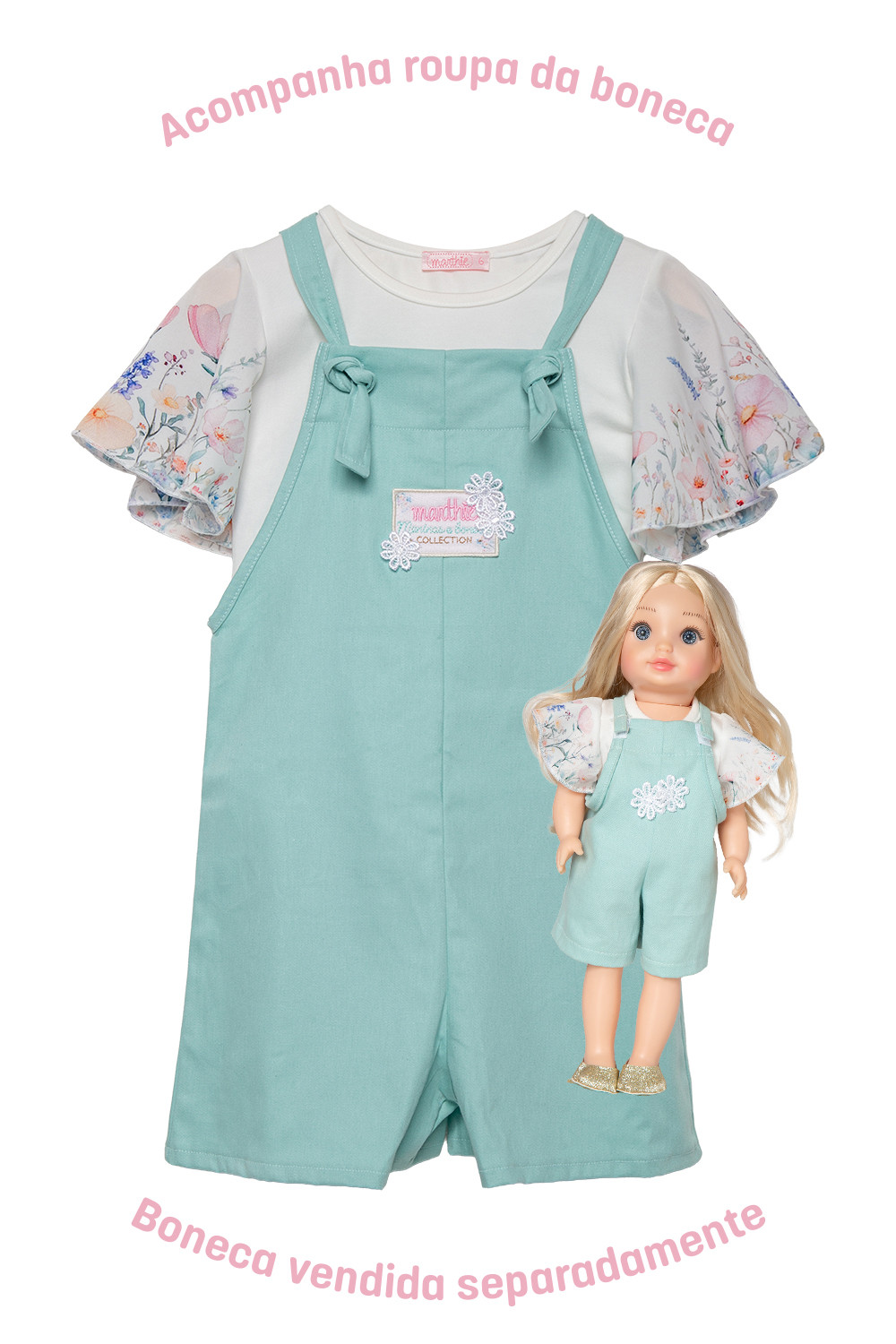 O conjunto MA0387 é perfeito para dias ensolarados, trazendo conforto, liberdade e delicadeza em cada detalhe. Ideal para passear, brincar e viver momentos especiais ao lado da sua boneca preferida vestida igualzinha!