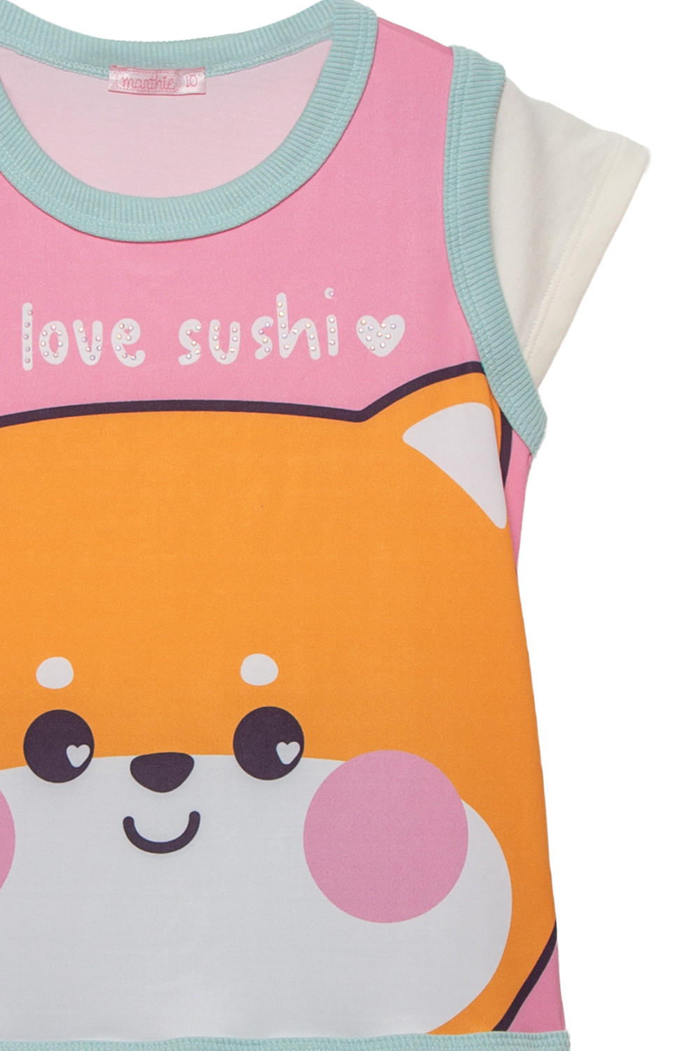 👕 Blusa divertida: Em malha geladinha com toque leve e estampa super fofa de raposa estilo Kawaii e strass irisados. A barra com babado dá movimento e delicadeza ao visual, enquanto os acabamentos em ribana mint deixam tudo ainda mais charmoso imitando uma sobreposição de colete.