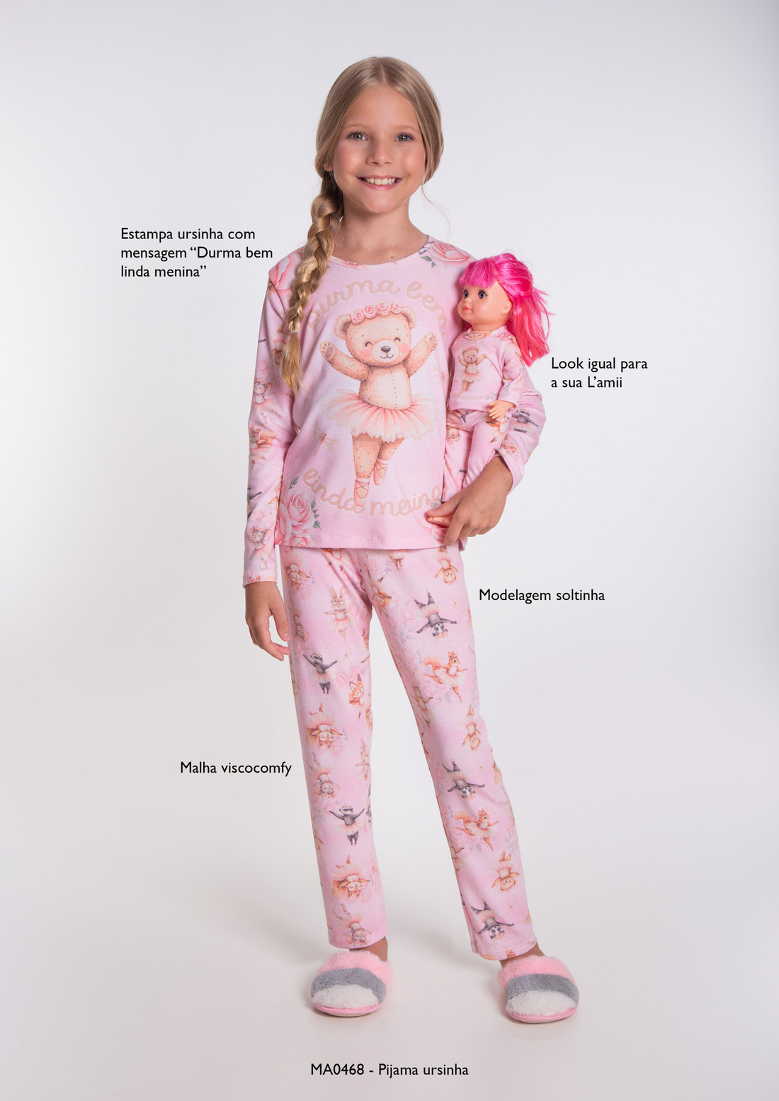 Descrição: Um abraço em forma de pijama para noites de sonhos doces e tranquilos! O Pijama Ursinha foi criado para envolver as meninas em carinho na hora de dormir. ✨